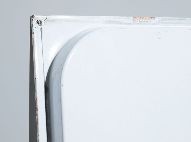 ジャン・プルーヴェ設計の建築においてはシルバーのアルミ製ファサードがよく知られているが、こちらは表面に白の塗装が施された鉄製。詳細は不明だが、学校などの大きな建造物に使用されたものである可能性が高い。