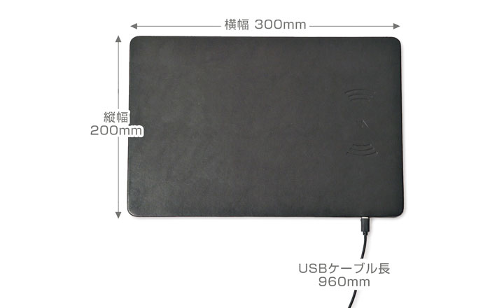 乱雑なデスクで充電ケーブルを探すのもひと苦労……なんてことなくすっきり充電。レザー調の表面、滑り止め加工された裏面など、マウスパッドとしてのデザイン、使い勝手も◎。