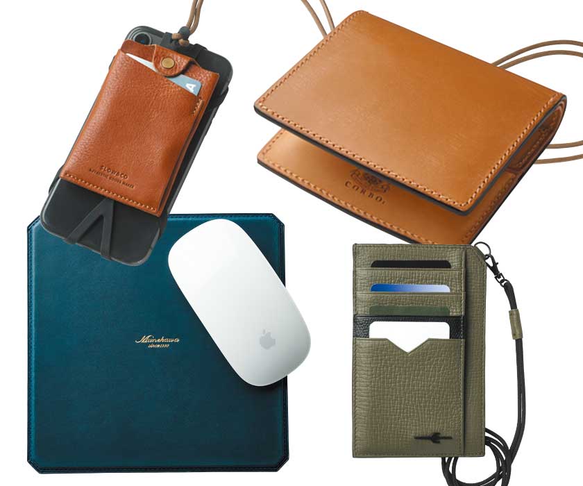 キャッシュレスもテレワークももはや日常の一部。そんな今どきの生活に必須な製品がプラ製ばかりじゃ味気ない。ここは革製を選んで品よくキメるのが吉。愛着も湧きますよ~。