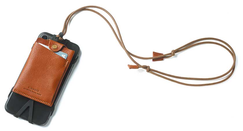 プラスチック製が一般的なスマホ用ネックホルダーも、革製になればイメージ一新! 素材は栃木レザーのヌメ革で、カードが2枚収納できる仕様だ。スマホの四隅をゴムでパチンと固定するタイプなので、極端なミニスマホでなければ対応可能。機種変しても長く使えるから経年変化が楽しめる。W6.3 × H9.5 × D1.0cm。1万4300円(スロウ 鎌倉店)
