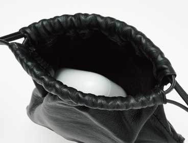 ファスナー付き財布と巾着袋がまさかの合体! 財布側には紙幣や硬貨、カード類を収め、巾着袋側には鍵やエアポッズなど小物類を収めるなど、ひとつで二役を担うから荷物の減量にも最適。巾着側は羊革、財布側の内装には牛革を使用。コードを手首に通せば、手提げポーチのようにして持ち運べる。W9 × H17.5 × D25cm。2万6400円(ベータ)