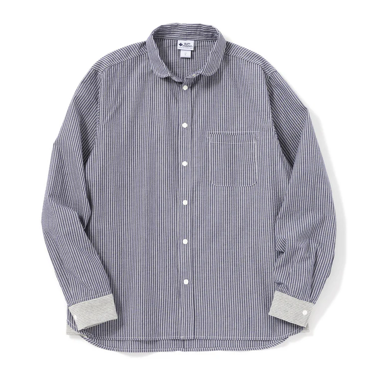 【シャツで2WAY】襟を畳めば畳めばバンドカラーに変身するシアサッカーシャツ【ジムマスター】
