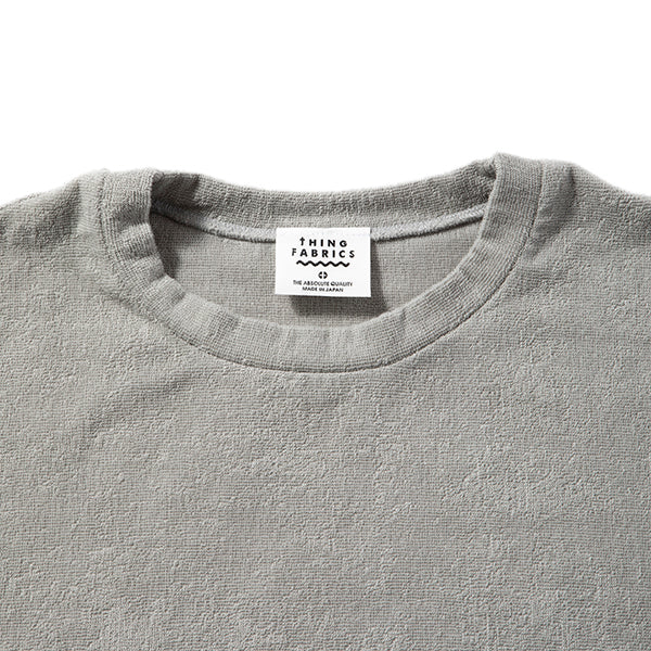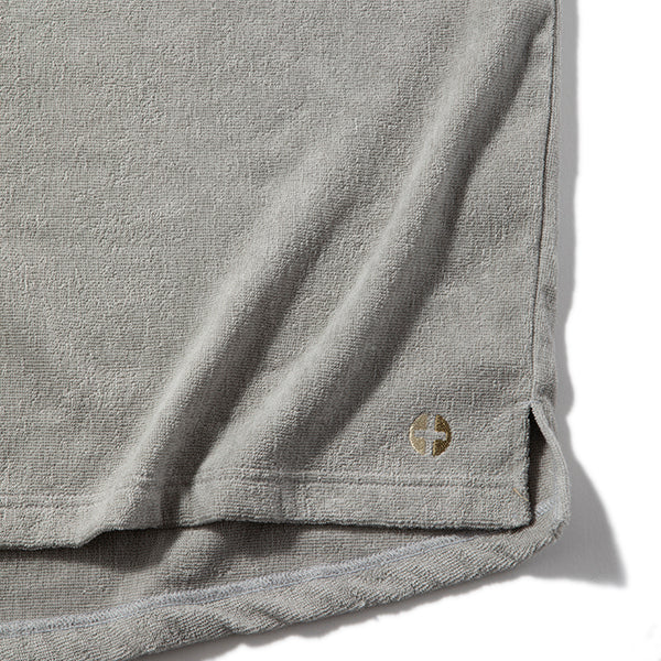 今治産タオルの快適な肌触りを、独自のノウハウでアパレルに活かしているシングファブリックス。例えばこのトップスは、肉感のあるパイル地が表情豊かで、ニットのように着回しが可能なんです。それを可能にした、今治品質を保ちながらウェア用に強度と毛羽落ちを改善した独自生地。