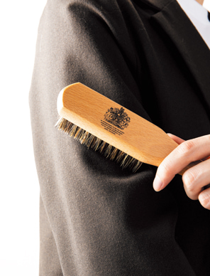 ヒルブラシは1922年に創業した英国最大のブラシメーカー。ロイヤルワラントの紋章が物語るように、ブナの木のハンドルとしなやかなイノシシの毛を使ったブラシが代名詞で、帰宅後のスーツの手入れから、室内のインテリアやカーテンまで幅広く使える。高級感がありつつナチュラルな印象も、紳士の日用品に適任だ。205 × 40mm。3300円(ヒルブラシ)