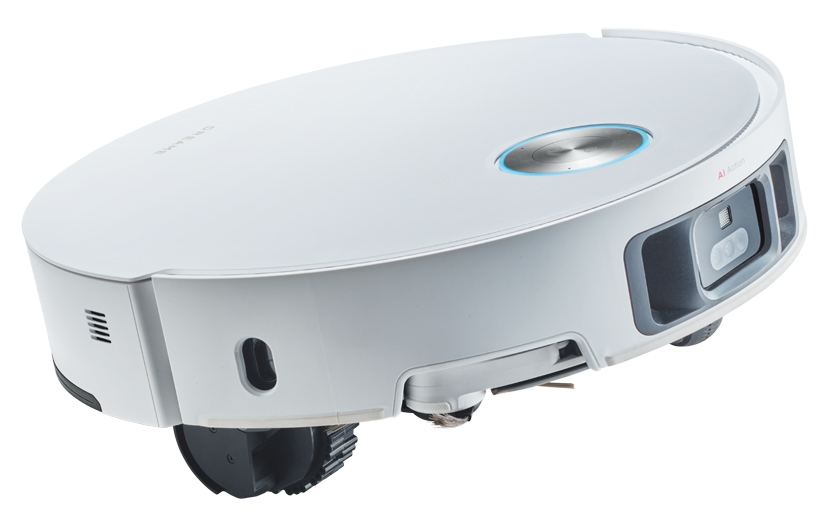 最大6cmの段差を越える「ProLeapTMシステム」に加え、レーザーセンサーやAIカメラにより障害物を回避する優れたナビゲーション、底面に2種類の特殊ブラシ、伸縮式サイドブラシ&回転式モップを搭載。ベースステーションの洗浄やゴミの収集、水拭き機能用の給水など6つの作業を全自動で行える最新モデル。W35 × H8.9 × D35cm(センサー格納時)。22万9800円。
