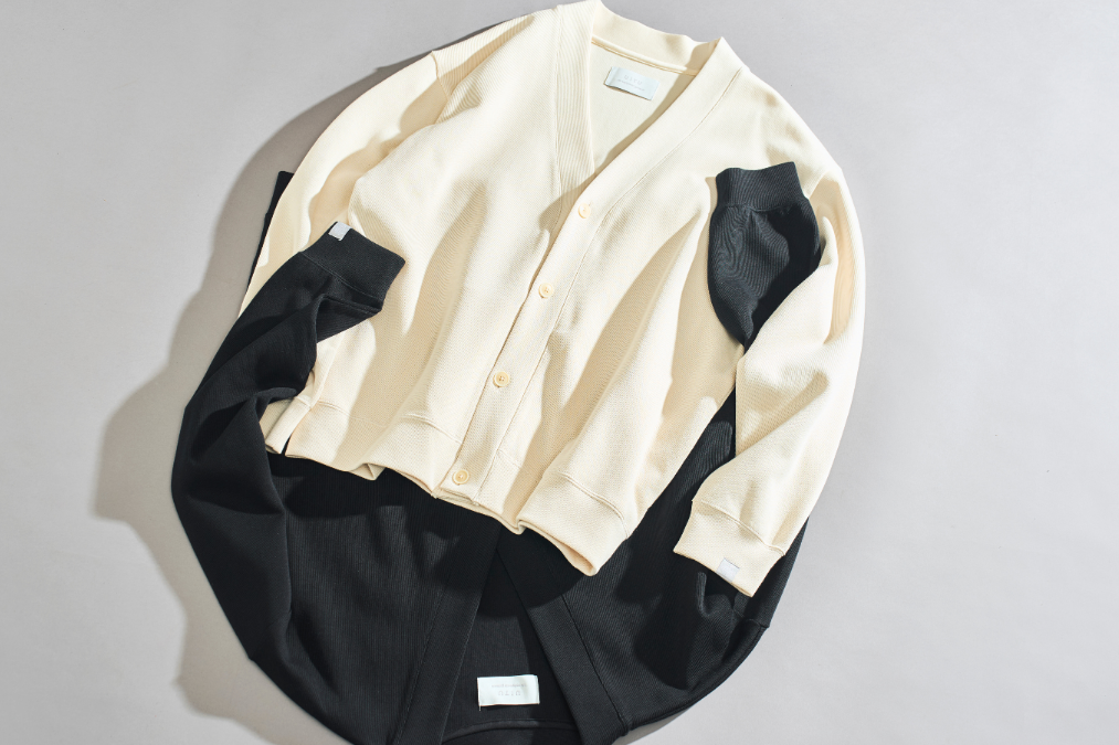 朝〜夜にかけて気温差の激しい時期にあると重宝する、カーディガン。秋冬の羽織ものの定番ですが、その形や素材感からどうにもほっこり感やカジュアル感が出てしまうのも否めない。でもユイツのカーディガンならば、無駄な装飾はなく非常にシンプル。ソリッドな見た目なのでクリーンでスマート。Tシャツやシャツの上にさらりとレイヤードするだけで、秋の装いを感じる大人っぽいコーディネートが完成します。