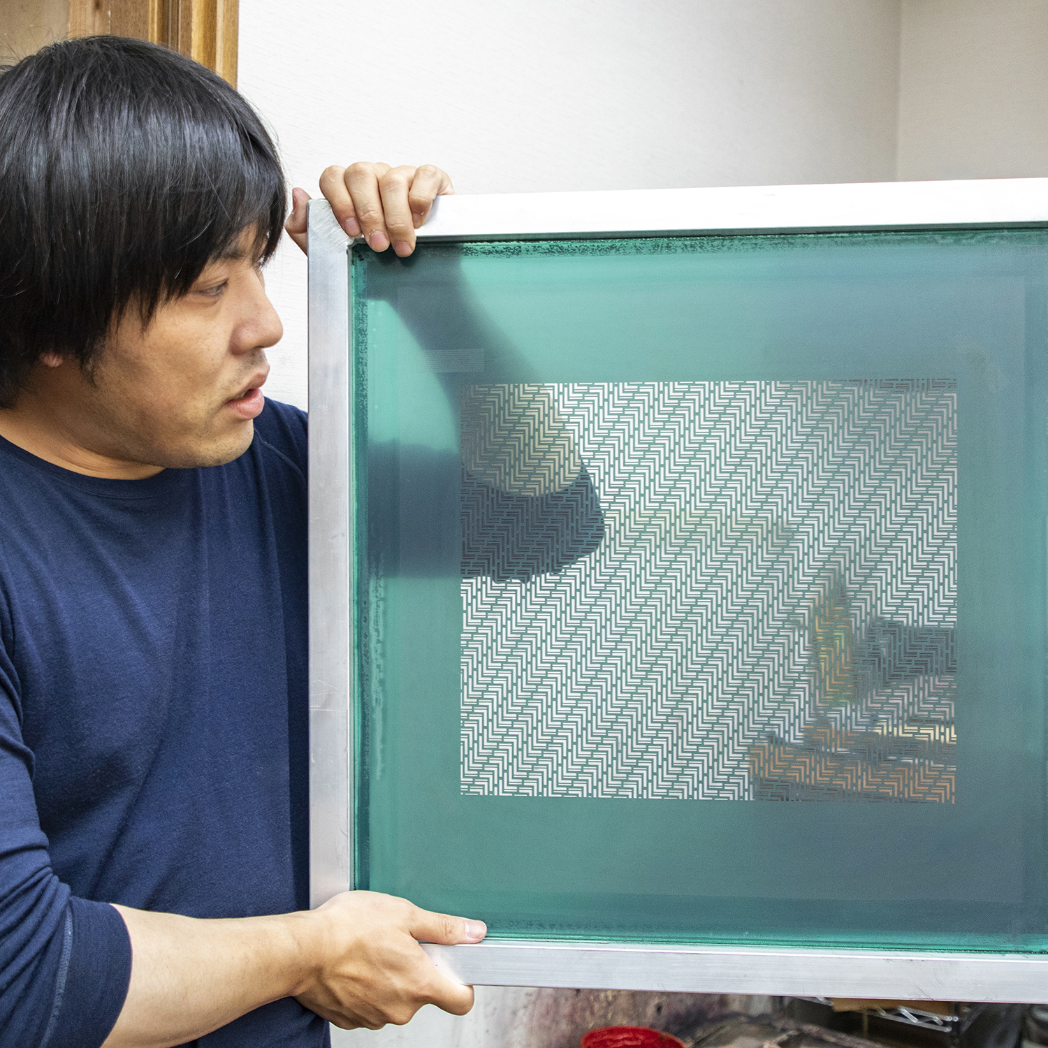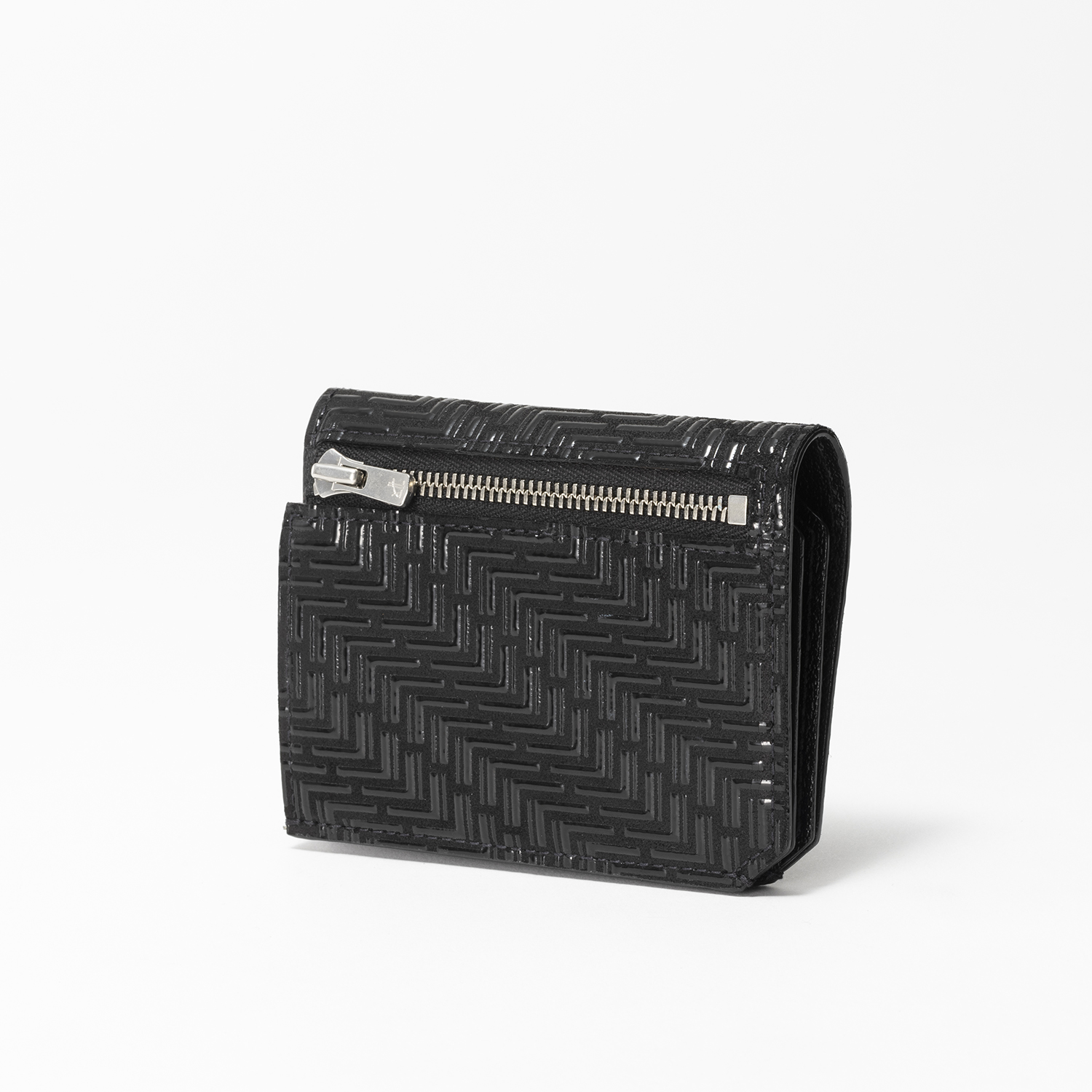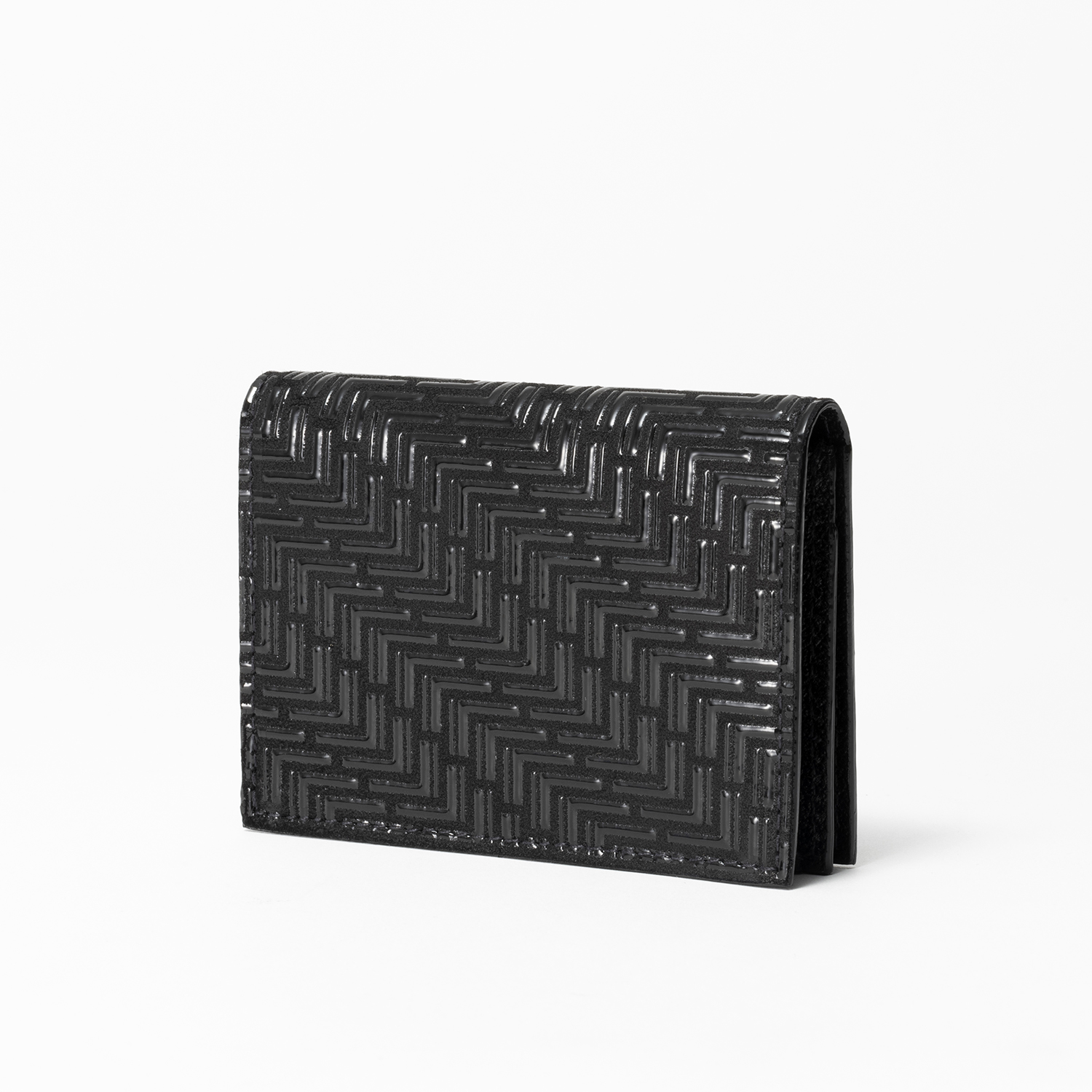 外装の艶やかな表情は、鹿革に漆で柄をつける「甲州印伝」によるもの。400年超の歴史を誇る日本の代表的な伝統工芸のひとつで、極めて高い技術を要する伝統工芸士の資格を持つ山本裕輔氏の「印傳の山本」による、精緻な手作業の賜物。