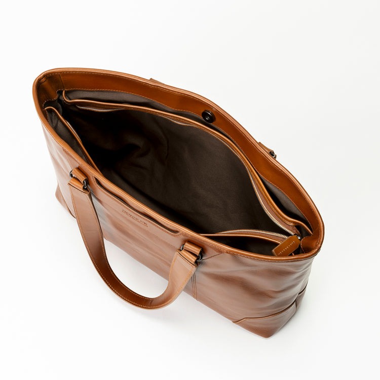内装中央にファスナー収納付きで、財布など貴重品の収納に便利。味わい深いツヤのあるオイルレザーを贅沢に使用。熟練の職人による丁寧な縫製で仕上げた高品質仕様となっています。落ち着いた大人の印象を演出する、シンプル&高級感ある仕上がりです。