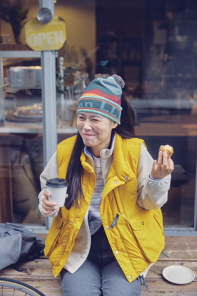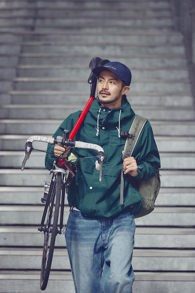 もともとアウトドアウェアが好きで日常的に街使いしているから、自転車に乗るときも変わらず着ています。今まではファッションとして愛用していたけど、本来の機能を活かせるし、ついに本領を発揮するときが来た!って感じですね。