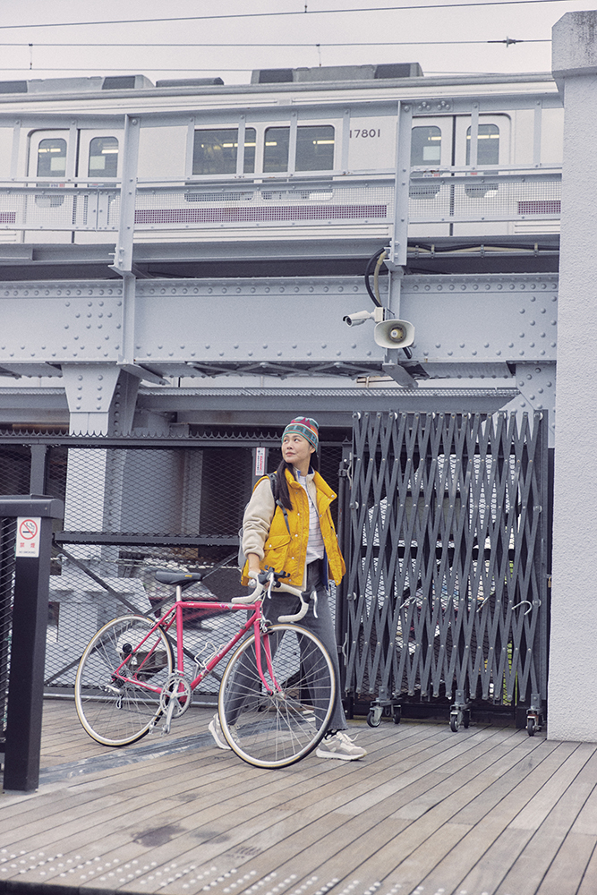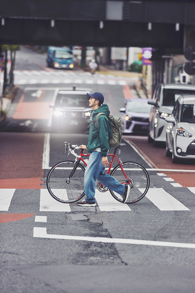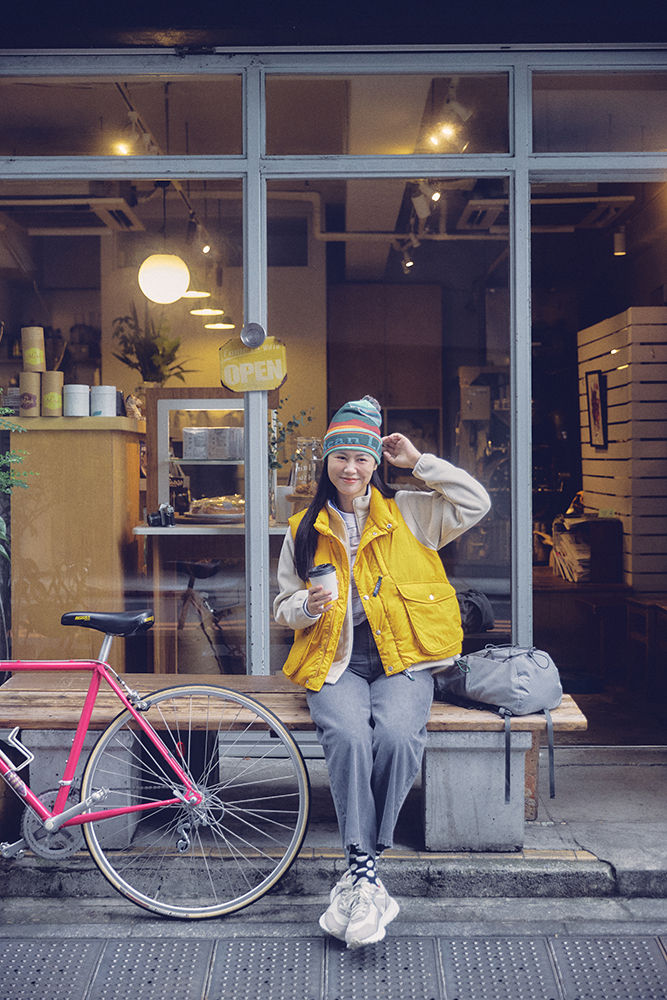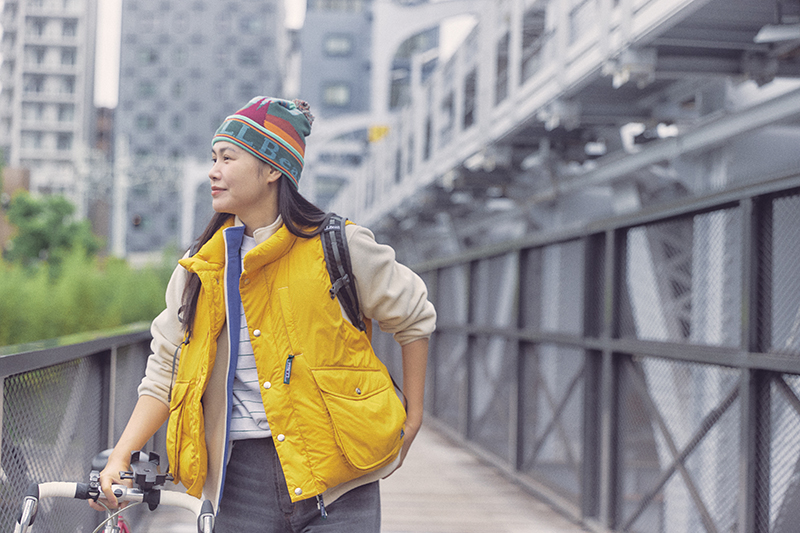 もともとアウトドアウェアが好きで日常的に街使いしているから、自転車に乗るときも変わらず着ています。今まではファッションとして愛用していたけど、本来の機能を活かせるし、ついに本領を発揮するときが来た!って感じですね。