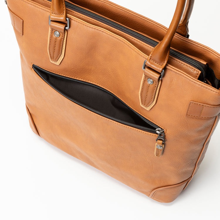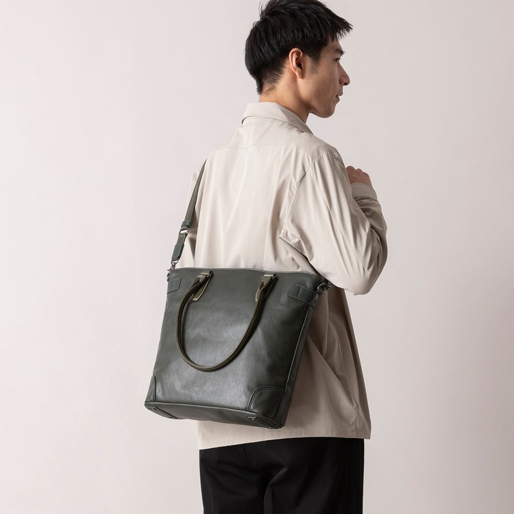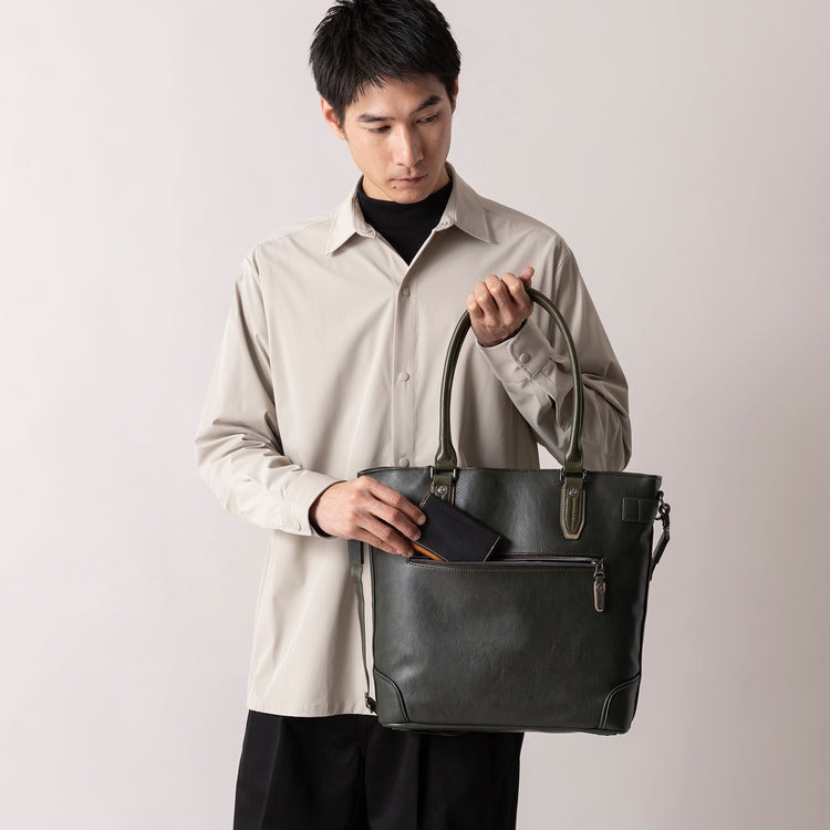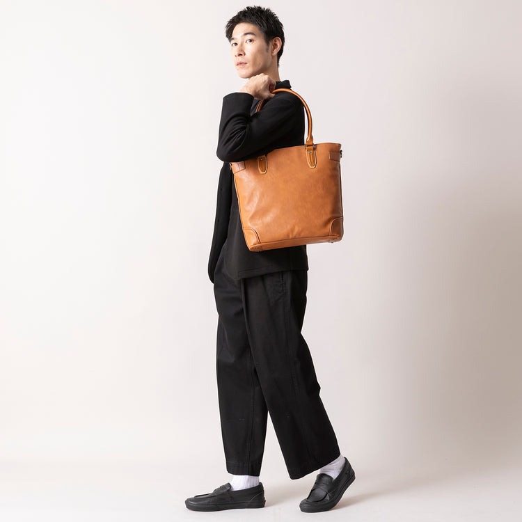 ビジネスはカジュアル化、カジュアルは上品化。そんな今の装いの両方にハマるのが、ムスタッシュ オン タイムの「2WAYトートバッグ」です。トート型の汎用性はそのままに、牛革の品格で見た目はスマート。A4とPCが収まりつつ、休日にも持ちやすい“大きすぎない”サイズ感が絶妙です。肩掛けしやすい長めハンドルに、着脱式ストラップでショルダー使いもOK。平日はきっちり、週末はクリーンに。一本でオン・オフを軽々横断する、令和スタイルの相棒バッグです!