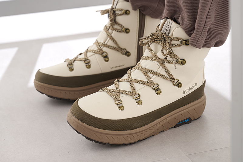 そんなテクノロジーがじつはフットウェアにも! 中綿などを充填しにくいブーツにおいても暖を取るための工夫だ。「フットウェアの内側に使うというのも凄くいいアイデアですね! シューズ内はある程度閉ざされた空間で熱が溜まりやすいから暖かくなりやすいし、それでいてムレにくいわけですから」。