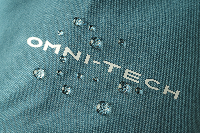 独自開発した防水透湿テクノロジーの「オムニテック」も健在。ご覧の通り水滴をシャットアウトし、ダウンの保温力をキープしてくれます!