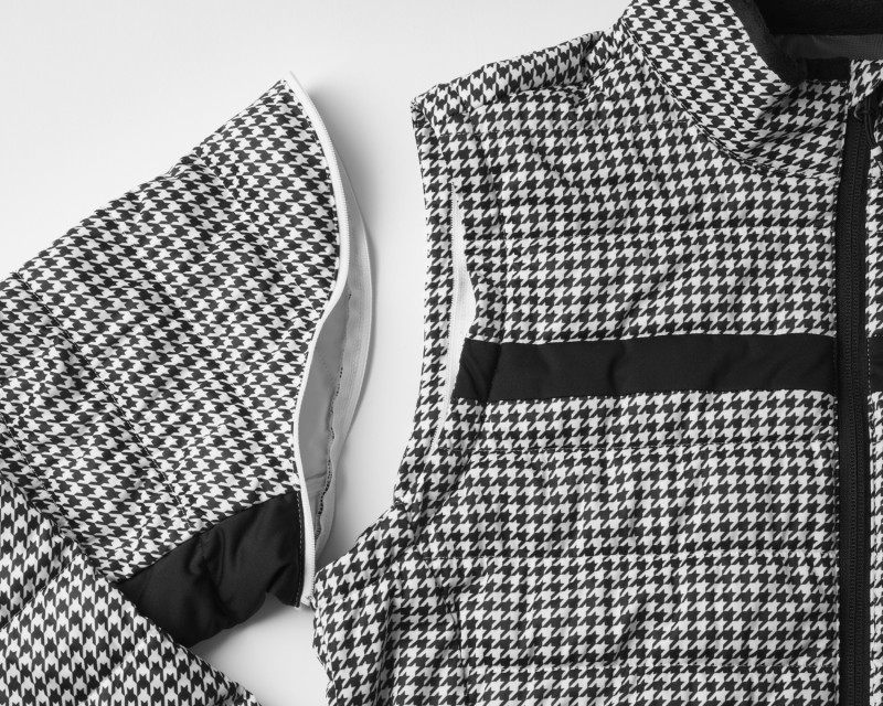 袖はファスナーで着脱する仕様だから、たった2アクションでベストがブルゾンに早変わり。ハンドトゥースのデザインは、スポーティすぎずシックにキマる♪ カラバリはホワイト、ブラック、ブルーを展開しています。