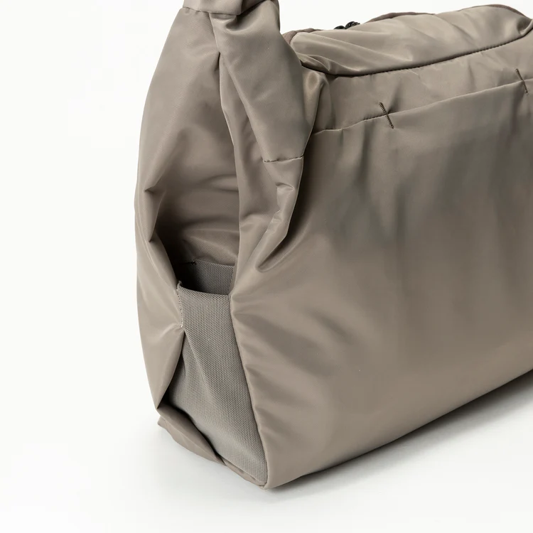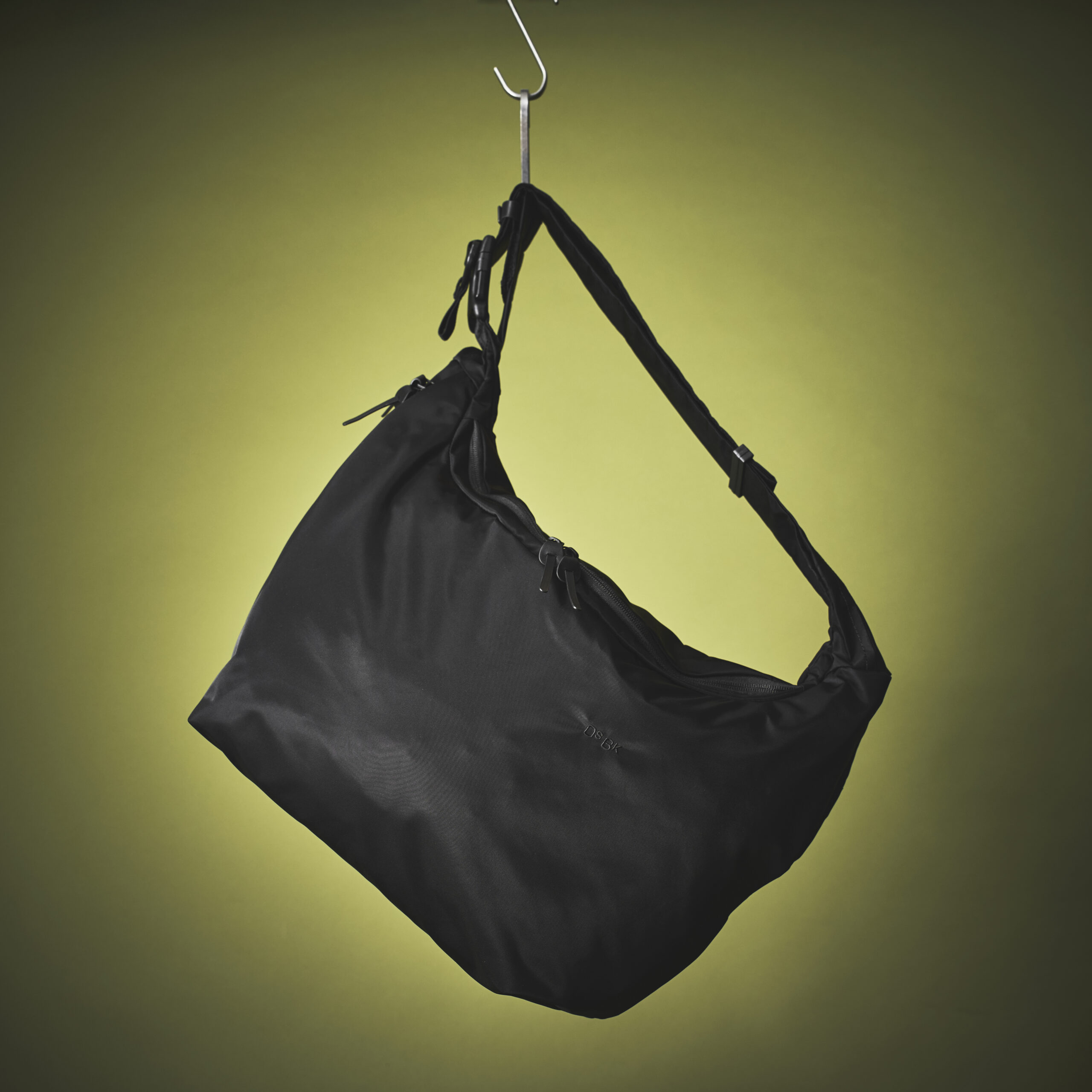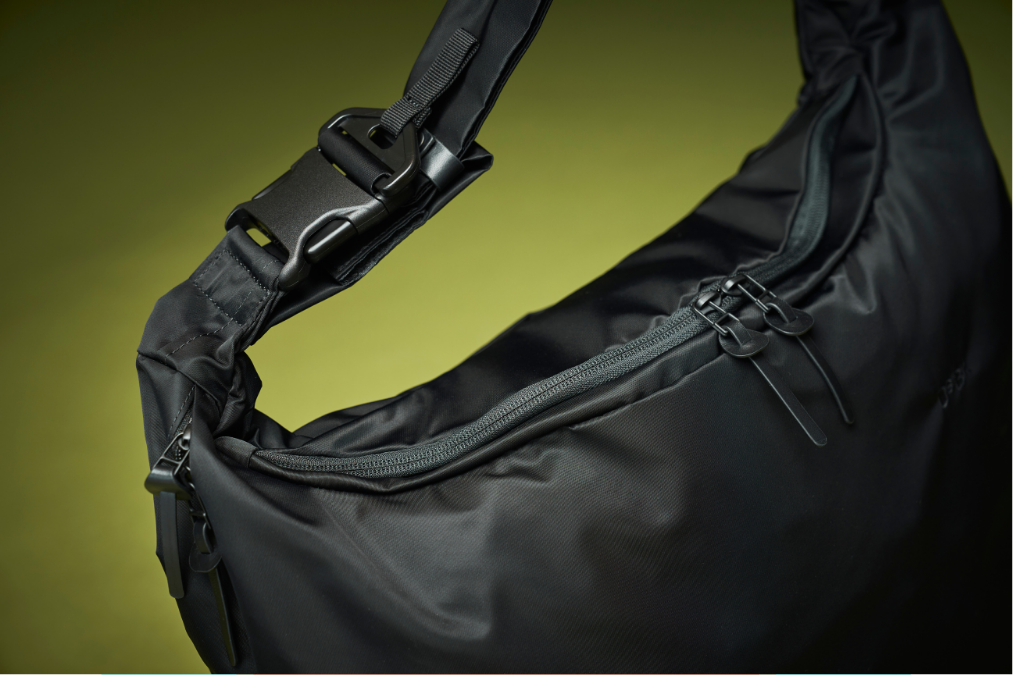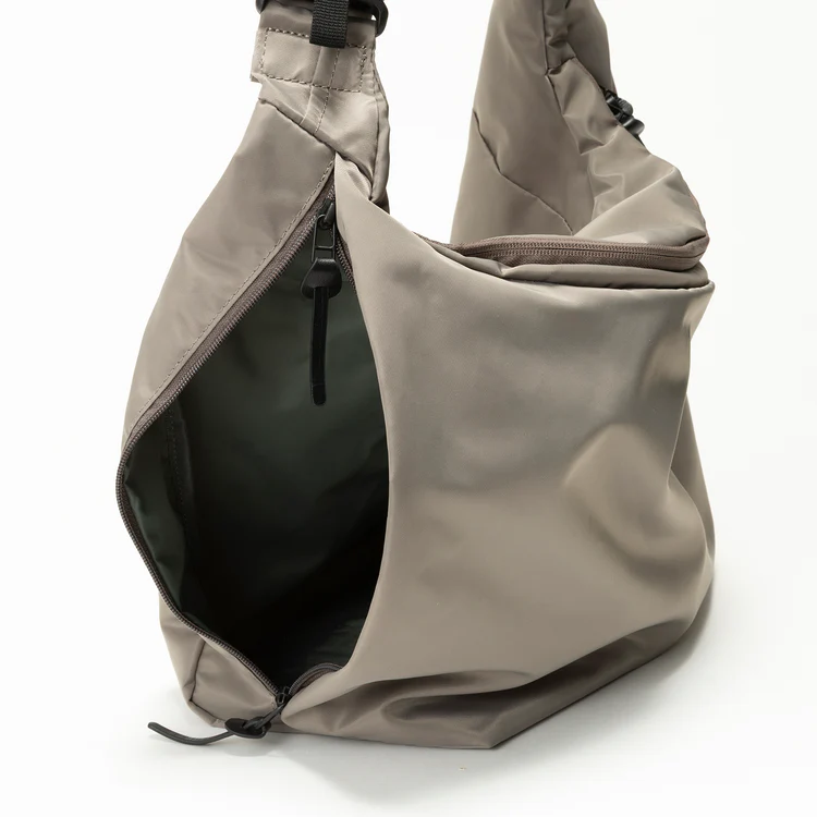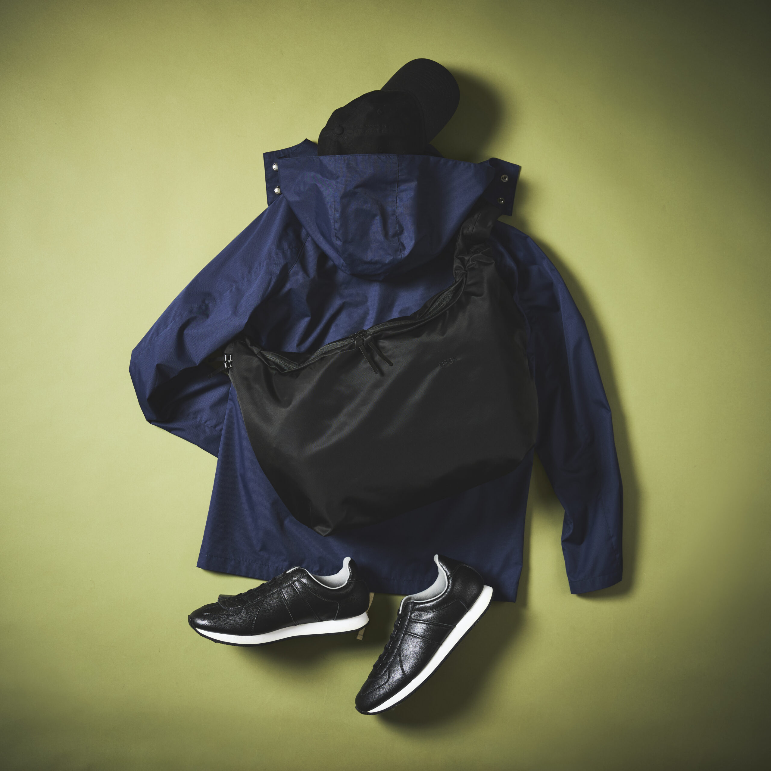 雨の日のおでかけ。傘をさしていたのにいつの間にかバックがびっしょり。中まで水が侵入していたなんてことありませんか? そんな悩みから解放してくれるのがディーエスビーケーのRegister Sling-Large(「ダントツ撥水」生地仕様)のショルダーバック。雨をサッと弾き、摩耗にも強い「ダントツ撥水」加工を施した生地を使っているので、雨の日もへっちゃら。レジ袋から着想を得たユニークなシルエットは身体に沿う設計でブレにくく、デイリー使いにうってつけのショルダーバックとなっています。
