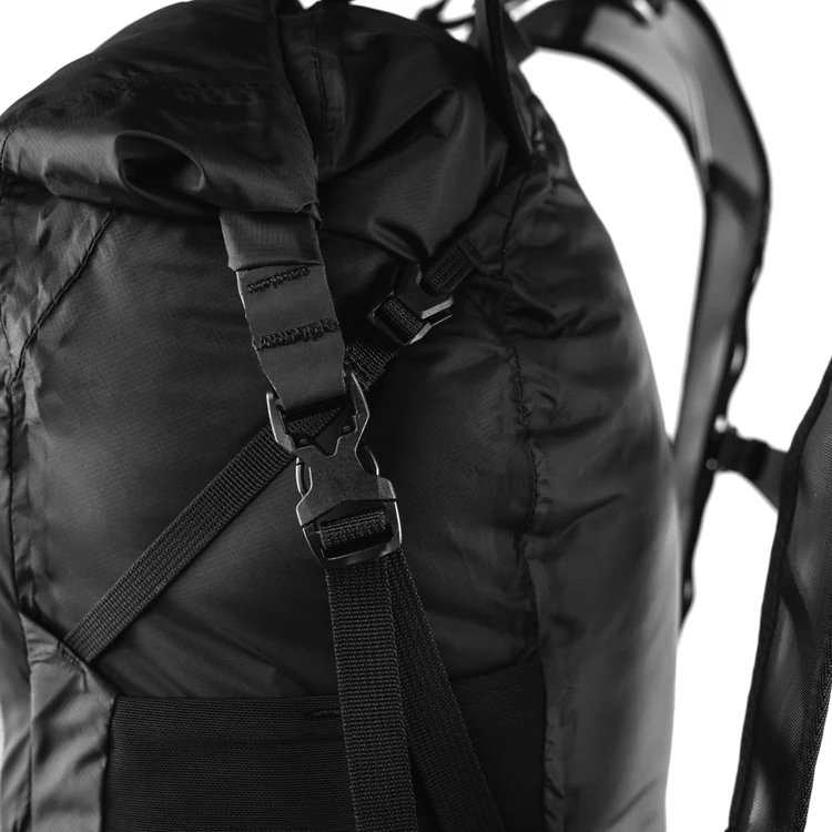 UHMWPE補強Robic®ナイロンで傷が付きにくく、雨でも安心。大型ボトルポケット、ギアループ、ツール用ショックコードなど、山行から街まで幅広く対応。