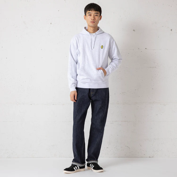 スーピマコットンと上質な米綿をブレンドし、長いムラ形状と短いムラ形状がランダムに出るように仕上げた別注糸を使用。バランスの取れたスタンダードシルエットで穿く人を選ばない。