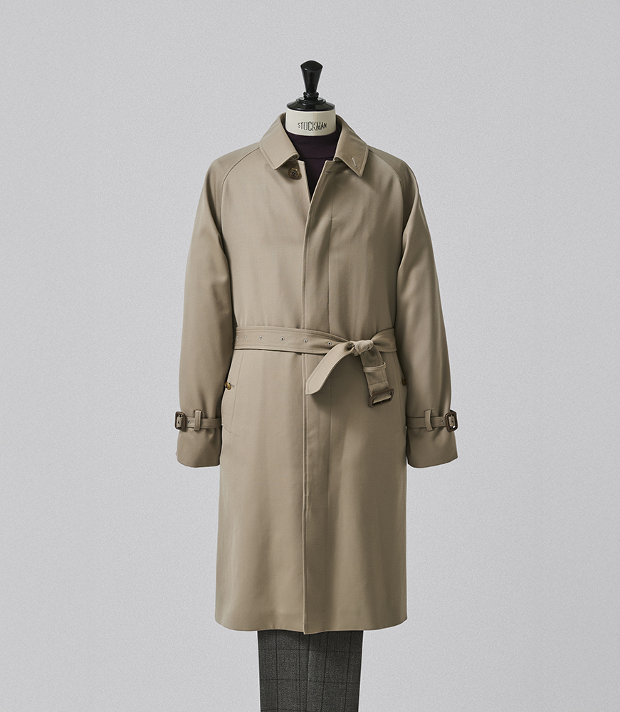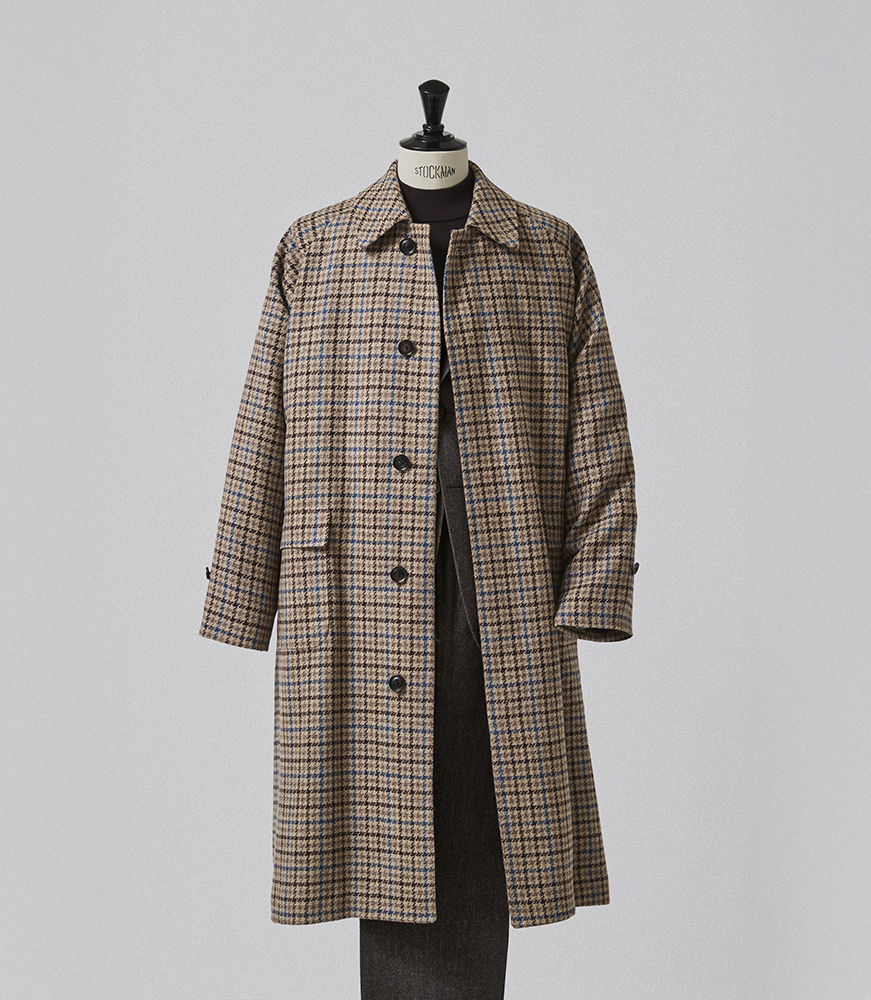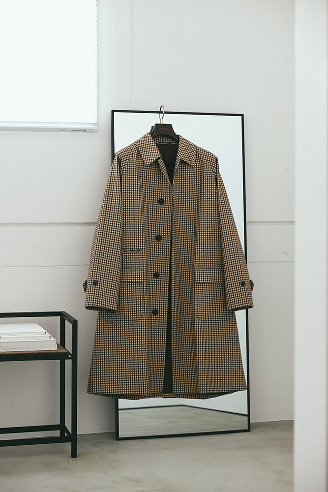 今季の注目は、新たに加わった「バルマカーンコート」。一枚袖のラグランスリーブにAラインのシルエットが美しく、ツイードやカシミヤなど素材選びも楽しいモデルです。