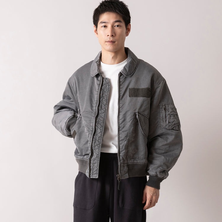 「CWU-45P」をベースに、中綿入りのヴィンテージライクなアウターに再構築した本作。ヴィンテージウォッシュ加工で、こなれた雰囲気を醸し出しています。タフなヘビーツイルを使用し、ミリタリーらしい質感に。立体的なフラップポケットなど、オリジナルのディテールを忠実に踏襲しています。リブ使いでボリュームのあるシルエットを引き締め、スタイリッシュに!