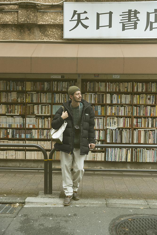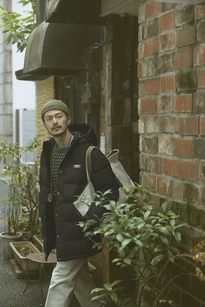 登山が趣味なので、アウトドアブランドのアウターに頼ります。ただ、山に行く本格的な装備だとタウンユースには大袈裟ですし、街では浮いて見えることもある。その点ハイテク感のない、こうしたクラシカルなデザインは馴染みがいい。普段よく着ているアメカジアイテムやミリタリーウェア、ヴィンテージのパンツなど、手持ちのワードローブともコーディネートしやすいと思います。