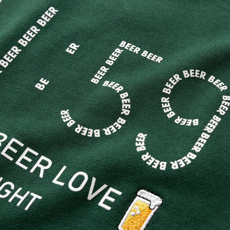 プリントスウェットを差別化するなら、こんなユニークなのを選ぶのが◎。ビールを愛するモノ好きには堪らない一枚になりました!0時越えても飲み続けたい~(笑)