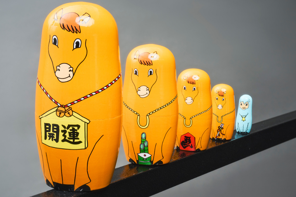 【ユーモアたっぷり】来年もきっとウマ〜くいくマトリョーシカ【ディテール】