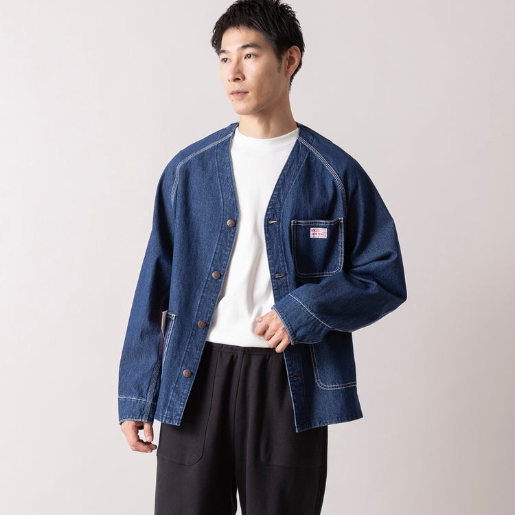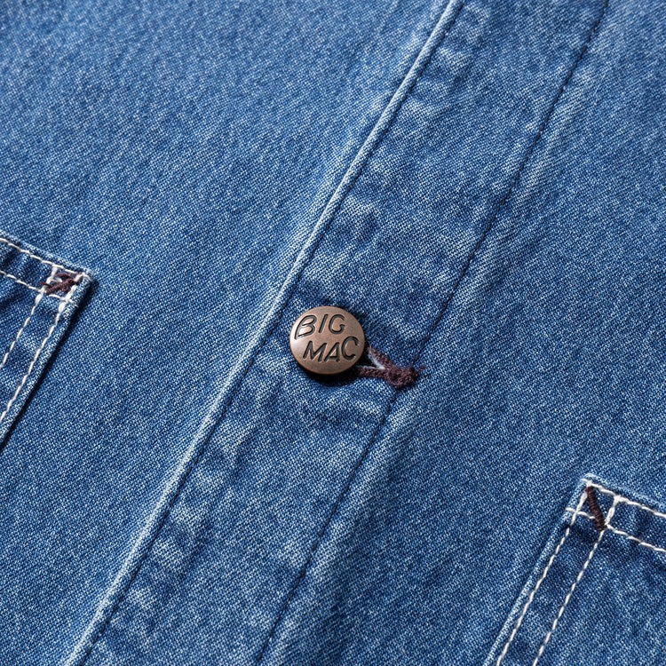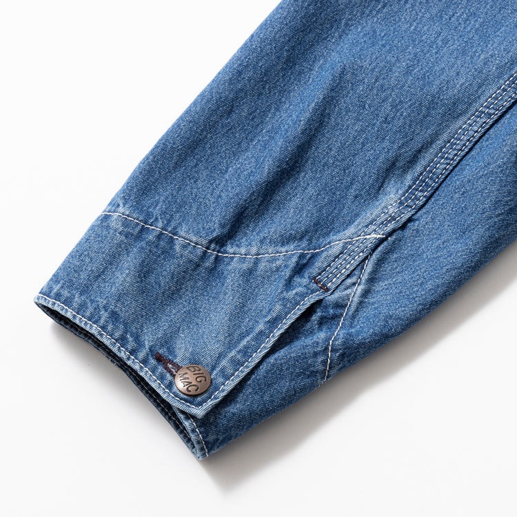 BIGMAC社に保存されていた実際のエンジニアジャケットをサンプリングしながら現代的なパターンに落とし込んだ特別な一着。屋内作業向けに作られていたエンジニアジャケット(技術者)特有の短めの着丈を、現代的なシルエットにアップデートしています。三本針ステッチ、メッキボタンと細部のディテールにまでこだわりが詰まってます。