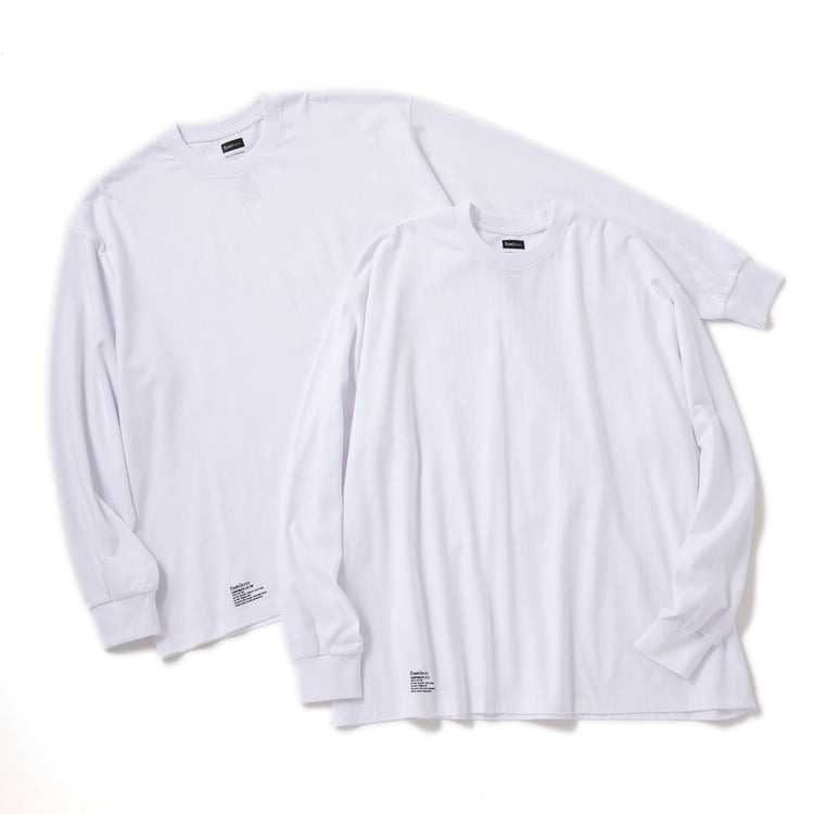 重ね着が主役の今こそ、ロンTの出来が着回し力を左右します。フレッシュサービス「2-PACK CORPORATE L/S TEE」は、まさに縁の下の力持ち的な存在。6.2ozのザックリ生地はふっくらしつつドライな手触りで、吸湿速乾&丸胴仕様だから肌当たりも快適です。肩落ちのオーバーサイズは一枚で抜け感よし、重ねてももたつかず秋・冬・春の三季対応。左裾のスペックプリントがさりげない主張を添えます。洗い替えに嬉しい“2枚入り”。今日もこれ、明日もこれ! 毎日のスタイリングのベースにどうぞ♪
