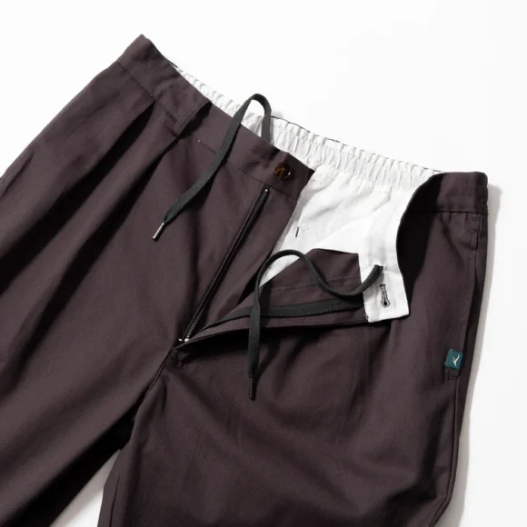 袖口のパイピングはクラシックさと耐久性を両立。車移動でも足さばきを妨げないサイドベンツが付く。ワンポイントで入ったブランドロゴも好印象。