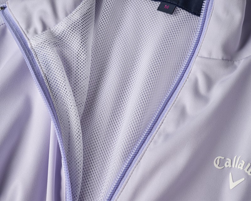 比較的暖かい日や、体が温まってきたときは、ライトブルゾンが重宝するもの。キャロウェイの「スターストレッチフルジップブルゾン」は文字通りストレッチ性バツグンで、中綿ブルゾン以上に快適にスイングできることはいうまでもありません。防風性のある素材をメインとしながらも裏地や、切り替え部分にメッシュを採用することで不快なムレ感は皆無。温かすぎるとかえって汗冷えが心配になりますが、これならそのストレスにも悩ませられません♪