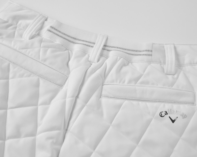 スイングの安定性や飛距離、再現性向上に、下半身が重要なのはご存じでしょう。裏を返せば、下半身が冷えて思うようなスイングができなくては、せっかくのラウンドが台無しです 。そこでおすすめなのが、腰から膝までの部分は中綿を備え、膝から裾にかけてはシュッとテーパードした「スターストレッチ×二重織中綿パンツ」。冷えや寒さの影響をダイレクトに受けるお尻周り部分は中綿素材がしっかり保温し、それでいてキュッと締まった美脚を演出してくれる優れものなんです!もちろんご存じスターストレッチ素材で作られているから、プレー中のストレスもほとんどないと言っても過言じゃないでしょう。