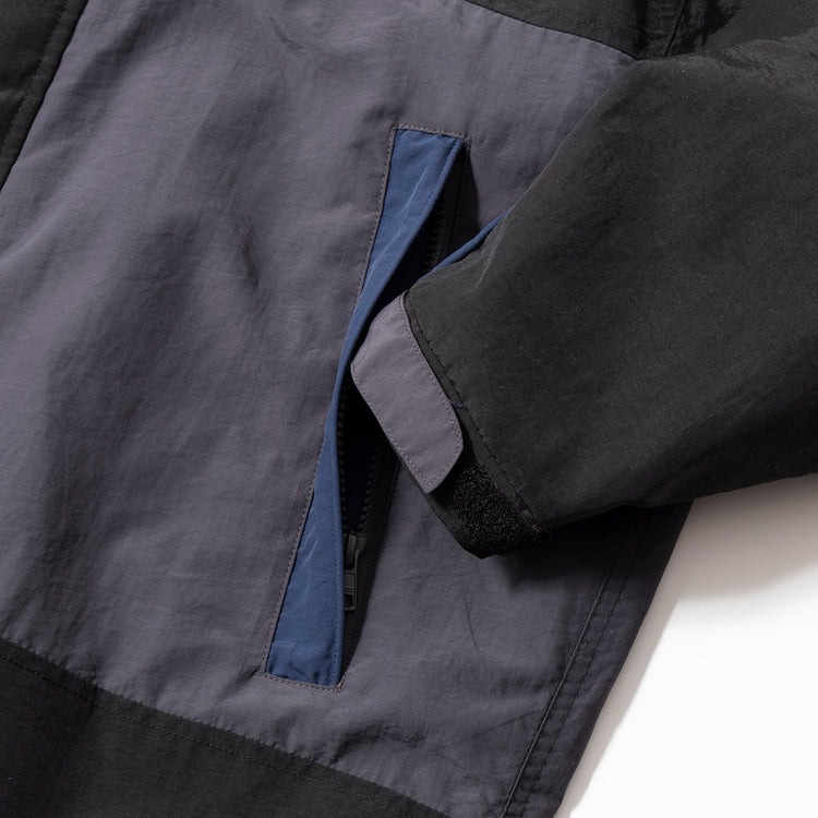 切り替えのレトロなテイストと、シボ感のある素材がポイント。ラフに羽織るだけで、こなれたレトロスポーツタイルが完成します!
