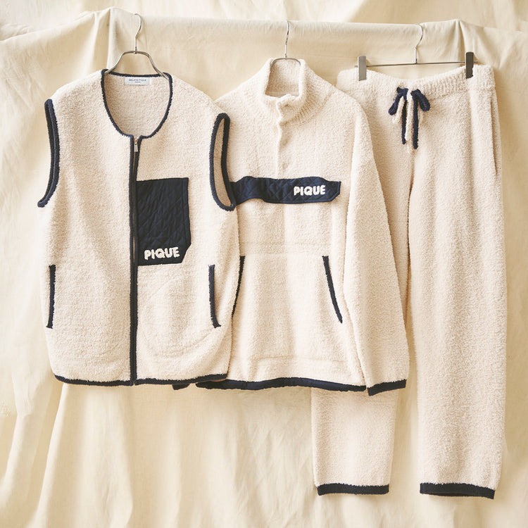 おうち時間の満足度=QOLは、部屋着の満足度でかなり変わってくるもの。ジェラート ピケオムに別注した「キモチよくて悶絶するレトロアウトドアプルオーバー」は、ふわモコなのに肌あたりはさらりの“パウダー”素材が超快適♪ レトロアウトドア顔の切り替えに大きめ胸ポケ、フラップのキルティングが程よいアクセントになってくれています。裾のドローコードでシルエット調整もでき、ワンマイルの外出にもぴったりな最強ルームウェアです!