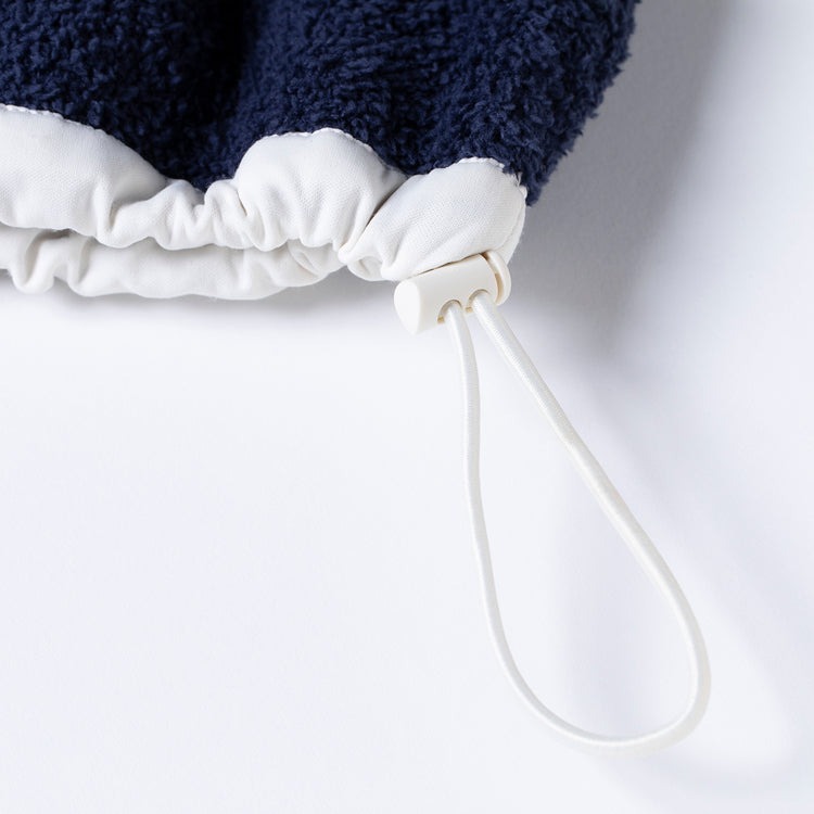 パタ○ニアを彷彿させる(!?)レトロアウトドアなテイストのプルオーバージャケットのデザインとなっています。胸元には大きなポケット付きで、フラップに用いたキルティング素材の別布もポイント♪ 裾にはドローコードで仕込んでおり、キュッと絞ってシルエットの変化も楽しめます。自宅だけでなく、コンビニやスーパーなどのワンマイルウェアとしても活躍間違いなし! パートナーや家族とのシェア使いにもぴったりです。
