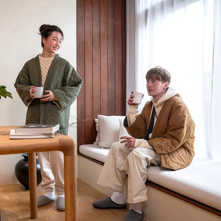 日本の冬着の定番「はんてん」を、中綿入りのモダンな羽織にアップデートした一着が登場! ダンテンの「DAN-TENコンフリーL 2025ver.」は、軽くて暖かく、短め袖で家事もしやすいのがポイントです。リバーシブルで2通りの表情が楽しめるのも洒脱。モダンなデザインに仕上げられているので、ワンマイル外出にも違和感なく取り入れることができるのです。それでいながら、パッカブル仕様で持ち運びも楽ちん♪ U-1万円で“冬の普段着”をアップデートしてみませんか?