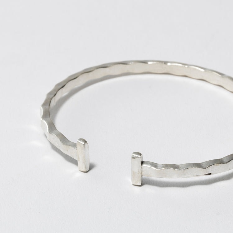 少数民族カレン族の職人が1点1点手作業で製作した本作。シルバー950を使用した、重厚感のある仕上がりとなっています。さり気ないデザインながら、手元に存在感をプラス。ブレスレットやリングとの重ね付けで、より一層おしゃれ度がUP します! 腕のサイズに合わせて調整可能なのも嬉しいポイント(※注意事項確認してください)。