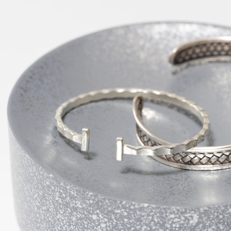 ちょっと着こなしが物足りないけれど、ゴテゴテした装飾性のあるアクセは苦手……。そんな方におすすめしたいのが、マレットの「カレンシルバーバングル AS211」です。こちらカレン族の職人が一点一点手仕事で仕上げたSV950を用いたシルバーブレスレット。細身で主張は控えめなのに、手元にほんのりと味わいと奥行きを添えてくれます。単体でも重ねづけでも活躍し、季節もスタイルも選ばないのも嬉しいポイントです!