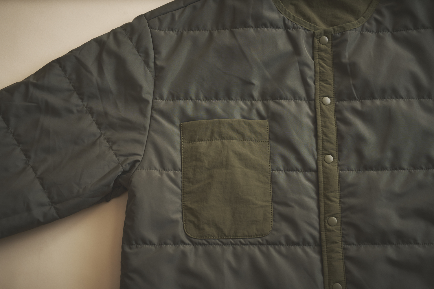 ノーカラーだからコートのライナーにしてもゴワつかず、単体で羽織っても上品見え。バッグに忍ばせておけば、寒暖差の激しい電車移動でも安心。軽さと暖かさ、ワーク顔の洒脱さまで詰め込んだ逸品は、今季のマストバイ確定です。