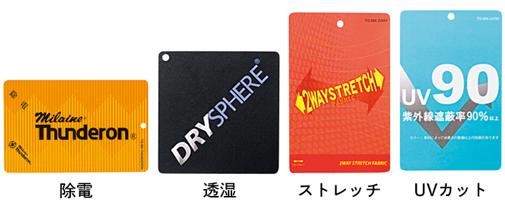 コットンライクな風合いの生地は、ちょっとした雨にも対応する撥水性能や2wayストレッチ性能のほか、透湿性、除電性、UVカット性能も装備。非常に軽いのも魅力だ。