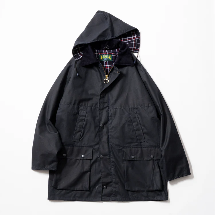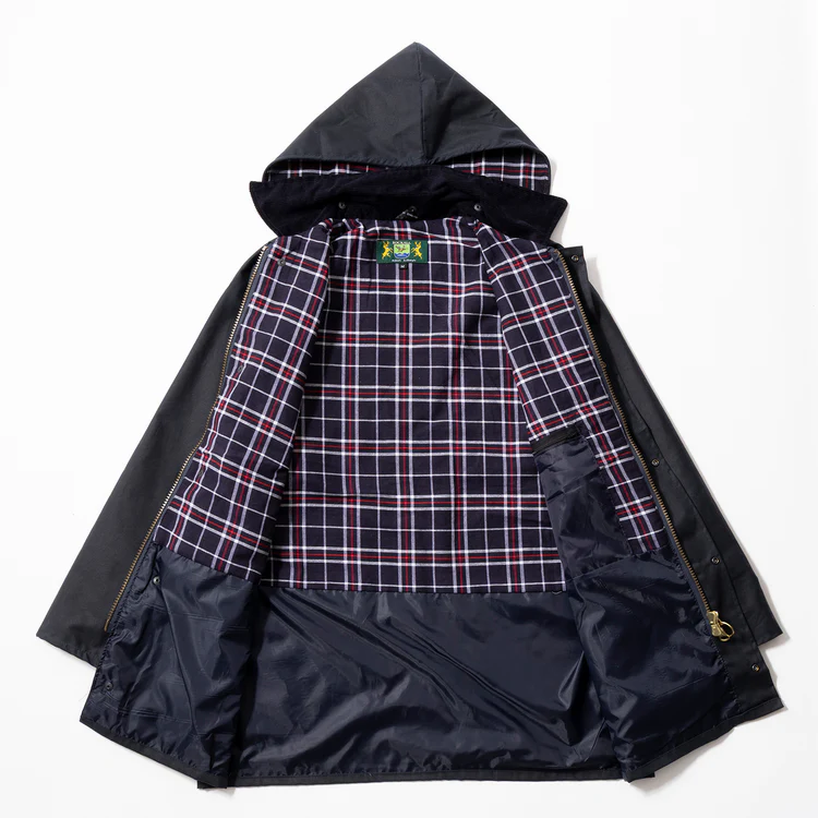 生地表面にオイルを塗り込むことで、光沢と防水性、保温性を高めたジャケットは全天候向きで動きやすく、悪条件や激しい使用にも耐える1枚。風を遮断し、雨を弾く。その実用性の高さは年間を通して雨の多いイギリスならでは。