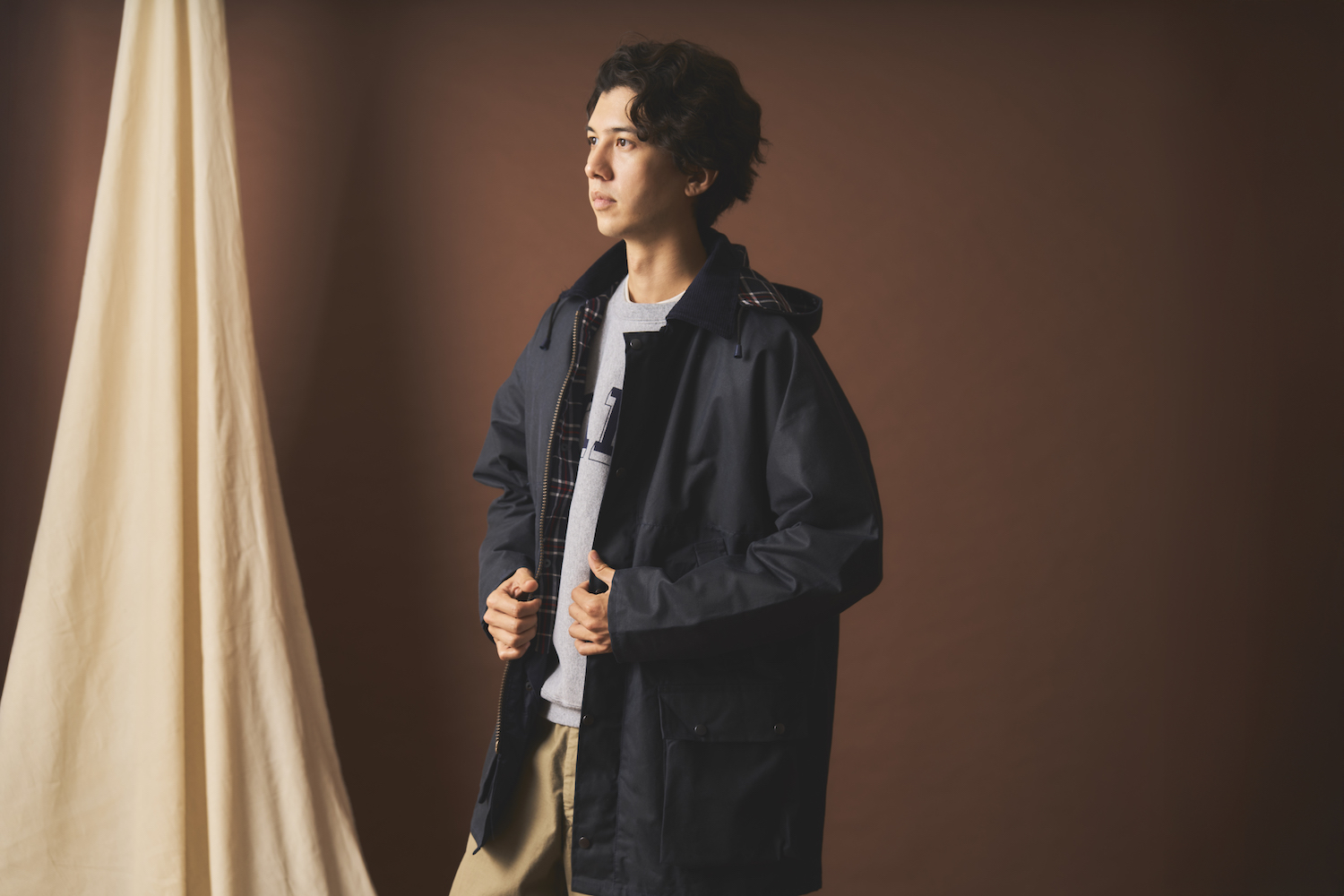 カジュアルなスタイルはもちろん、スーツの上から着用しても映えるマルチな一着。着用とともに味わい深く変化するエイジングもお楽しみ。メイド・イン・イングランドな上、コスパも高く、使い込むほどに愛着が湧いていく。今冬、ヤミツキになりそうなオイルドウェアです。