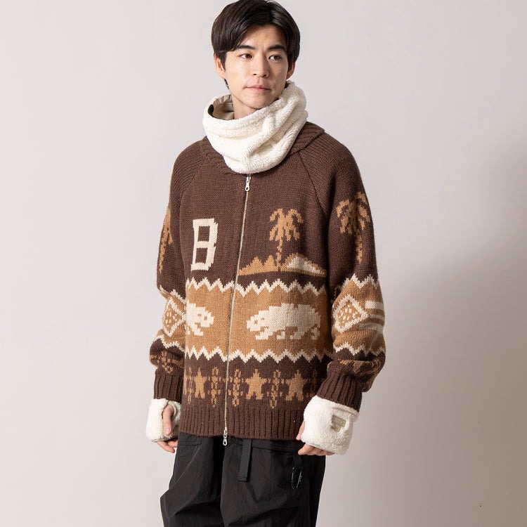 ジップアップのブルゾンとカウチンを組み合わせることによって着やすい。ニットはバーンズらしい編み柄の細部までこだわり、しっかりとした作り。手触りの良さとヴィンテージ感も魅力なちょっと差の出るニットアウターです!