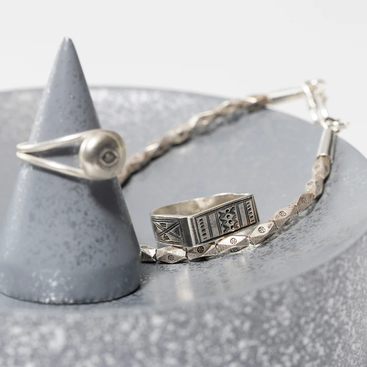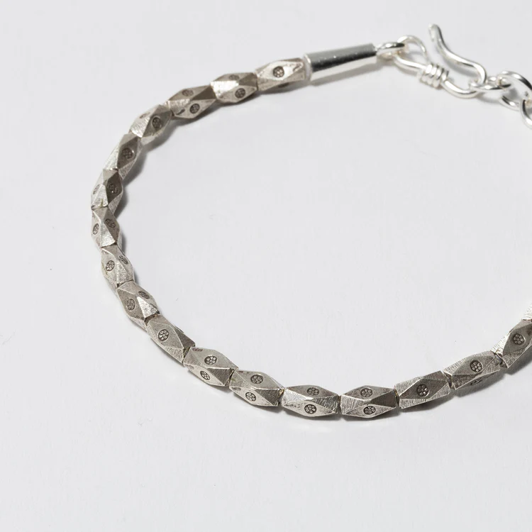 “微笑みの国”と言われるタイの山岳地帯に住む少数民族カレン族が、手作業で一つひとつ作り上げるシルバーブレスレット。純度95%以上のシルバーを使った素朴で繊細なつくり。手作業で一粒一粒連ねたビーズが光る、独特の風合いが味わい深い。さり気なく上品で、重たくなりがちな冬コーデの+αアイテムとしてもぴったり。