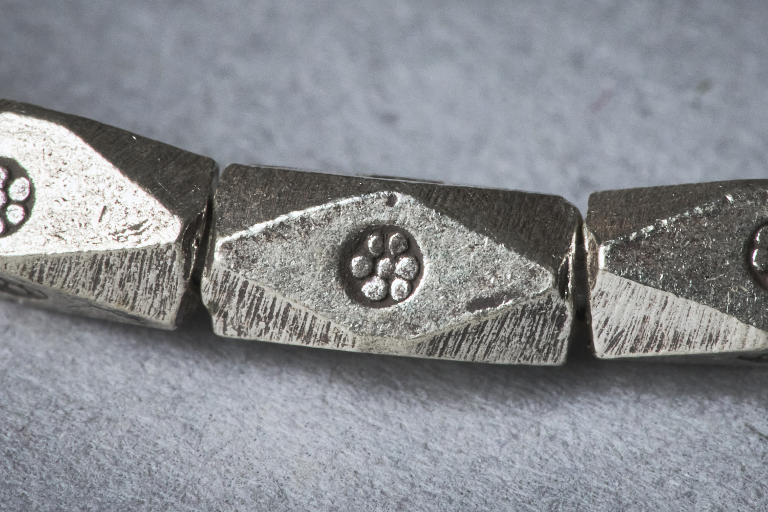 ビーズには、カレン族の幸せの象徴である『パドゥア』という花模様を型押しで刻印。繊細な表情で手仕事のあたたかみたっぷり。