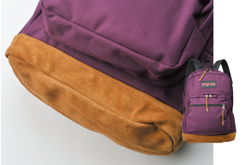 底面がレザーで切り替えられたデイパを見かけるが、これは単なるデザインではなく強度を保つためのもの。教科書などの重く、硬い荷物を入れても響かないよう、肉厚なレザーで補強しているのだ。一説によると、ジャンスポーツがパイオニアだと言われている。