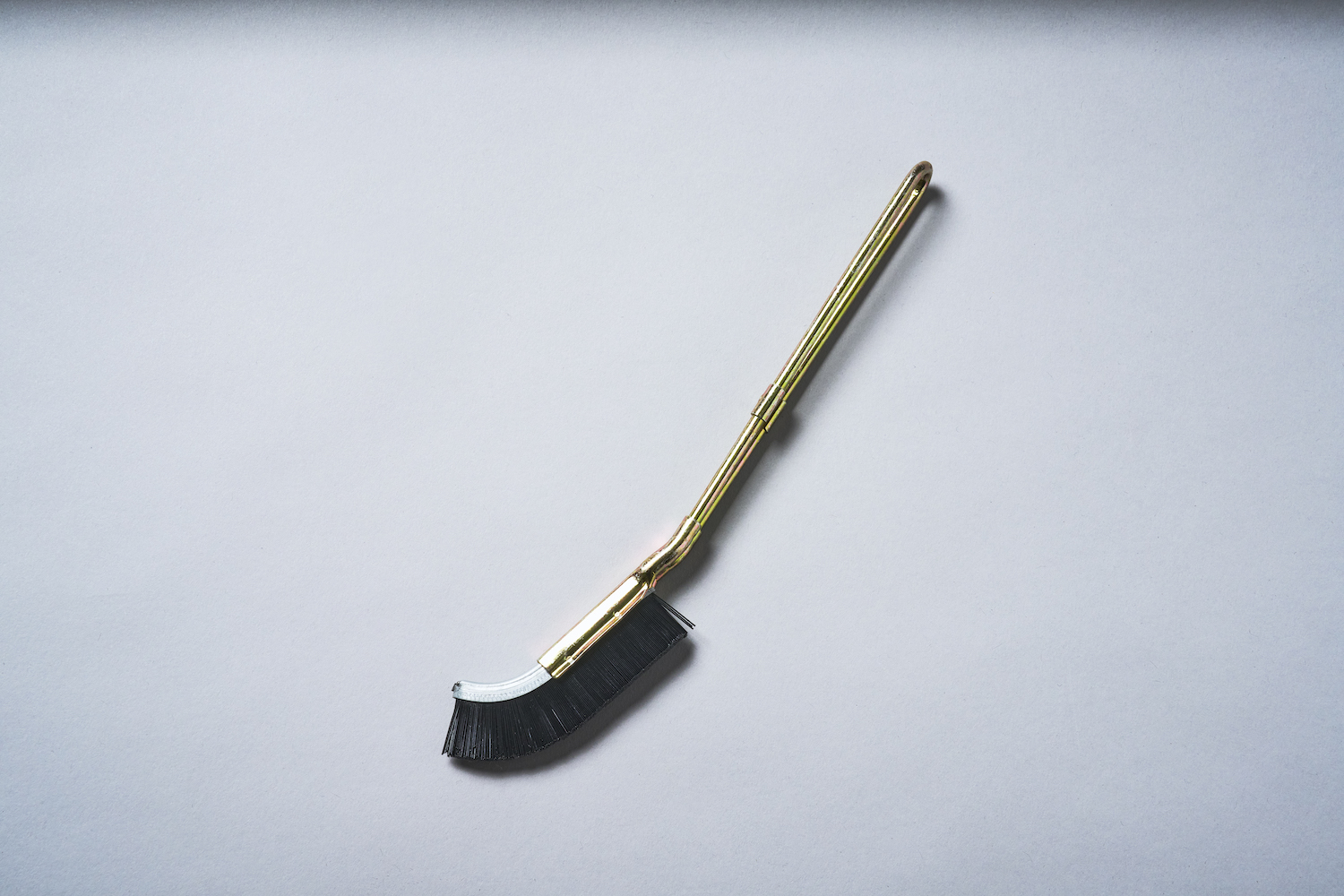 靴バッグメンテナンス職人が長年使っているブラシを商品化した靴洗い用ブラシ。絶妙なカーブがスニーカーの内側・つま先までしっかり届き、先に詰まった汚れやほこりをしっかりと掻き出します。