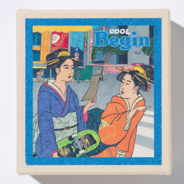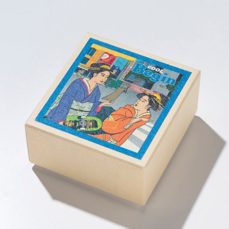 イラストレーターNAGA氏による、浮世絵の世界から現代へ転生したかのようなキャラクターたちがインパクト大♪ 本作は、COOL Begin創刊号である東京版の表紙イラストから、スケートボードを抱えた町娘を採用。渋谷の街を闊歩する様は実にCOOLです。おはこの中身は、COOL Beginで使用されているNAGA氏のスケーターが描かれた和紙しおりと、メモ帳(330枚)入りです。ちょっとした記念日のプチギフトとして人気の高いアイテムで、インテリアとして飾ってもお部屋の洒落感アップ間違いなしです!