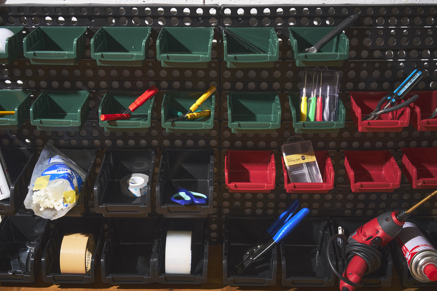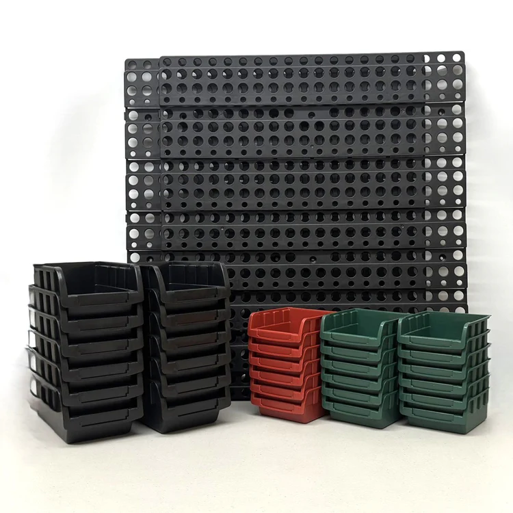 大小さまざまな収納ケース30個が付属。セッティングはボードの好きな位置に引っ掛けるだけの簡単設計。細々とした物を収納するのに最適で、整理整頓が苦手な方にもおすすめ。