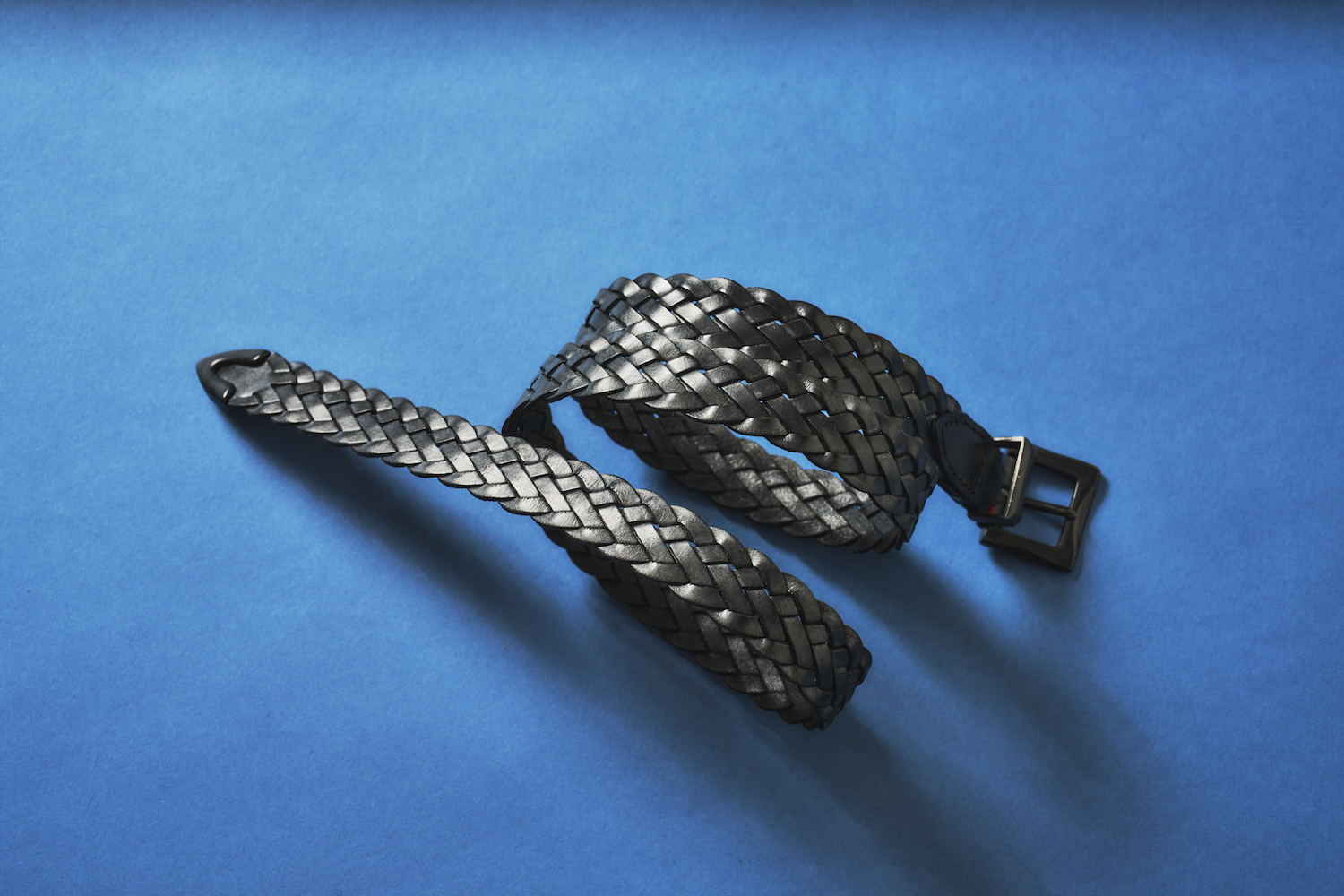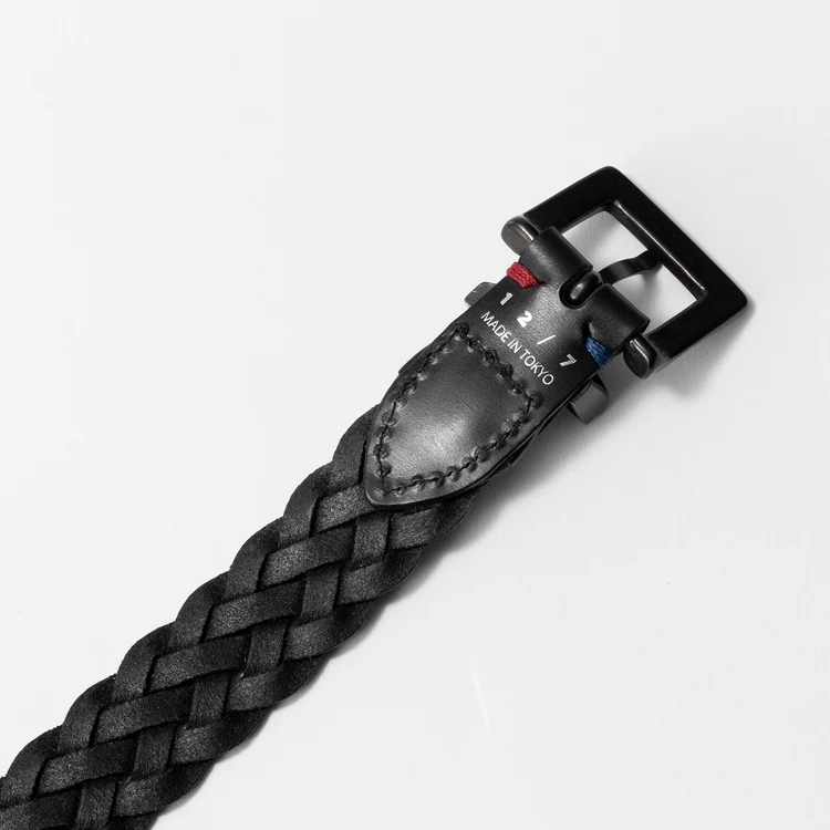バックル付け根に施された赤と青のステッチは、ベルトの黒と合わせてカレンダーの色を落とし込み、ブランドコンセプトの「週7」を表現。細部までこだわりがたっぷり。