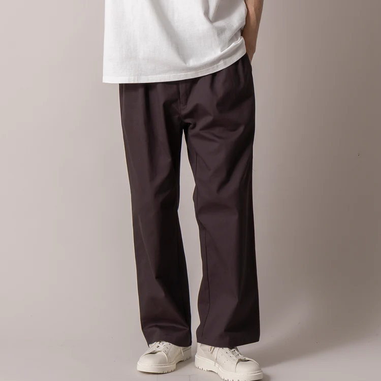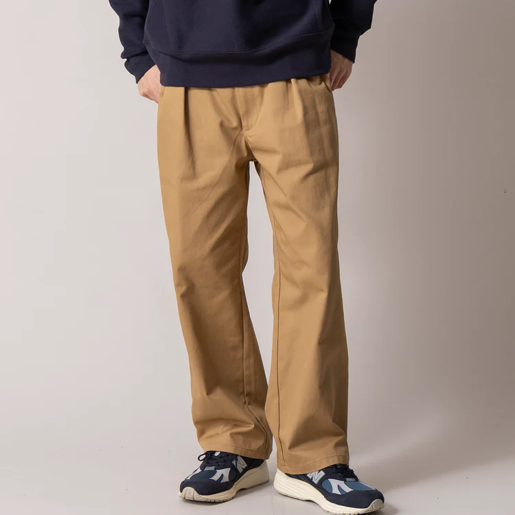 合わせやすいチャコールとベージュの2色展開。無骨な佇まいと楽さを合わせ持ったワイドなフォルムのイージーチノ。汎用性抜群なので、きっとロングシーズン活躍するアイテムになってくれることでしょう。